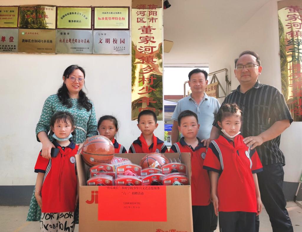为进一步深化新时代文明实践活动,在“六一”儿童节到来之际,受学校党委委托,5月30日下午校党委宣传部分两队前往浉河区董家河镇绿之风李芳希望小学、十三里桥乡中心学校和游河乡中心学校开展“快乐成长”乡村学校少年宫文艺志愿服务“六一”捐赠活动,为孩子们送去节日慰问品和祝福。